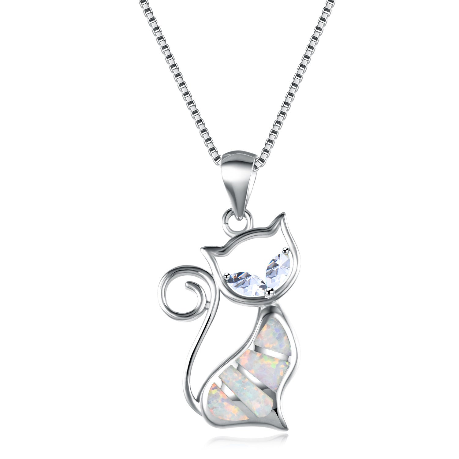 Two aqua diamond and blue Opal cat pendant necklace